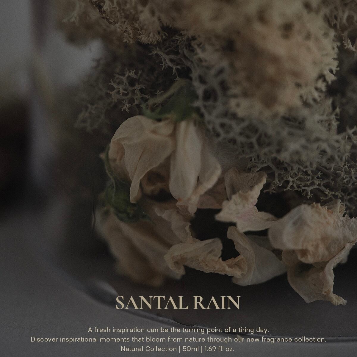 カルダモンと松葉の繊細で精巧なハーブスパイスノートが、雨上がりの湿った森の静けさを破り、自然の生命力を宿した香りを放ちます。存在感のあるサンダルウッドの深い香りが、自然が持つ驚異的なエネルギーと共にインスピレーションの瞬間を贈ります。